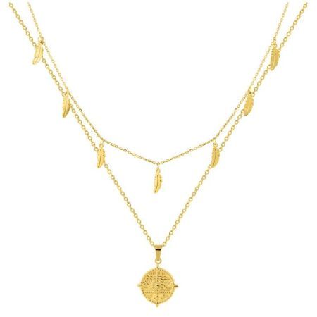 Collier double chaîne en acier doré avec pendentifs Argyor-MRM (AC)432156