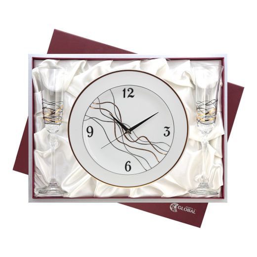 Estuche Cristal GA4258 (2) Copas Decorados A Mano + Reloj Pared