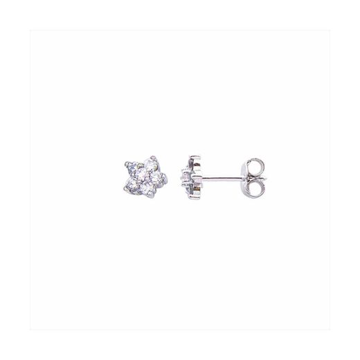 Pendientes Plata E04678 Flor Con Circonitas. Pendientes fabricados en plata de ley 925. Cierre a presión. Diseńo de flor con circonitas. Certificado de autenticidad y garantía de calidad en los materiales de fabricación. Ref E04678