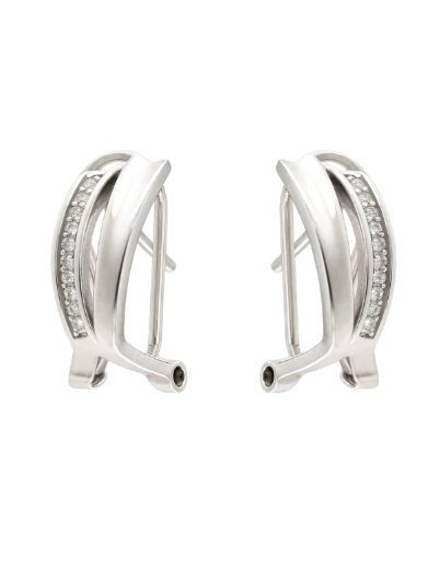 Pendientes Plata Mujer PPOM43 Bandas Cruzadas Circonitas. Pendientes fabricados en plata de ley 925. Diseño de bandas cruzadas con circonitas. Cierre omega. Certificado de autenticidad y garantía de calidad en los materiales de fabricación. Ref PPOM43